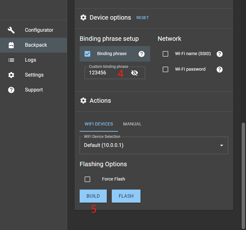 • Using ExpressLRS Configurator to build firmware for goggle:
