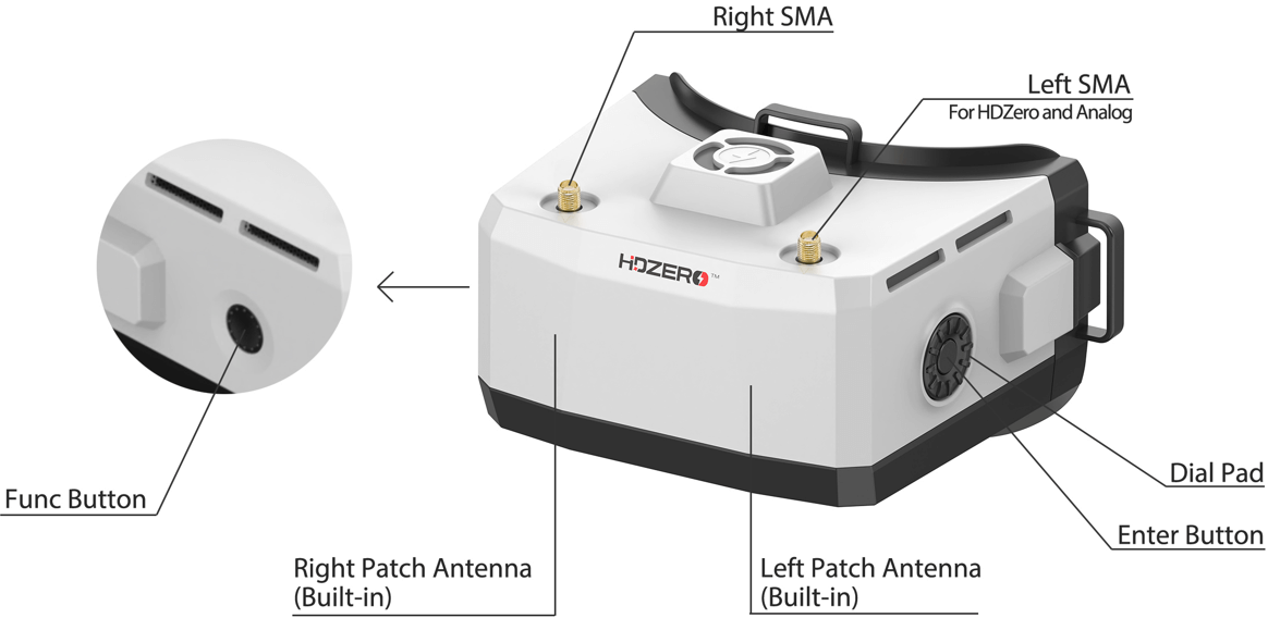 You can change the fan speed by pressing and holding the Func Button. You can monitor the fan speed changes on the goggle OSD to quickly change the amount of air blowing onto your face and the optic lenses while in the Video view.