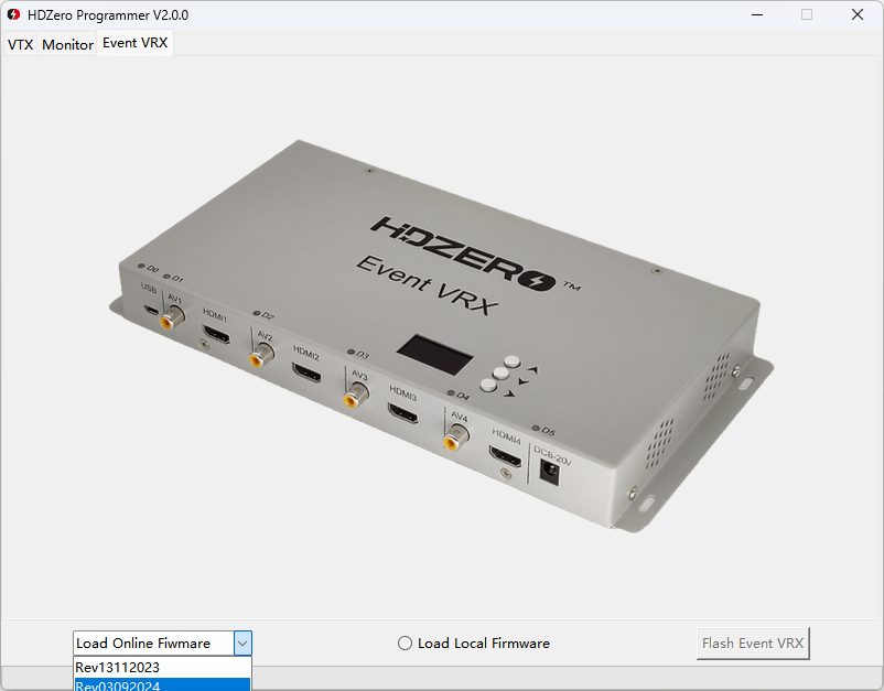 - Open HDZero Programmer.exe, switch to Event VRX page