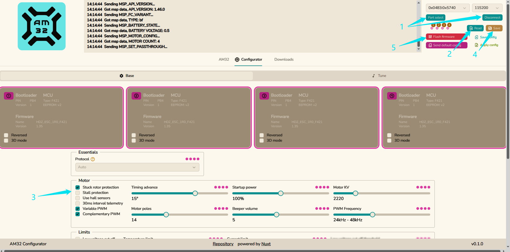 3. Open the AM32 Configurator: http://am32.ca