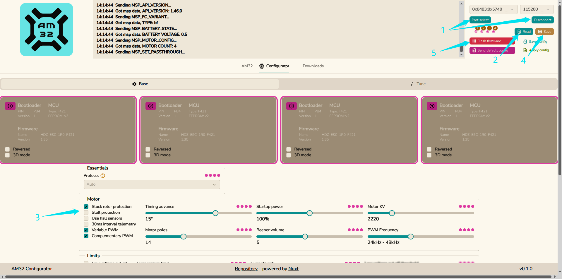 • Download BLHeliSuite32 https://github.com/bitdump/BLHeli/releases/tag/Rev32.10
