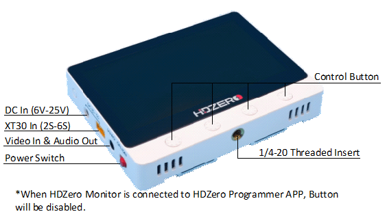 HDZero Monitor provides two different power supply interfaces: DC(5.5mm*2.1mm) and XT30. And built-in polarity protection.