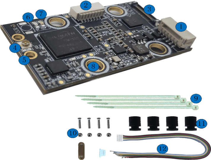 | 12 | Power/UART harness (20cm) and a PH2.0 connector (6P) |
