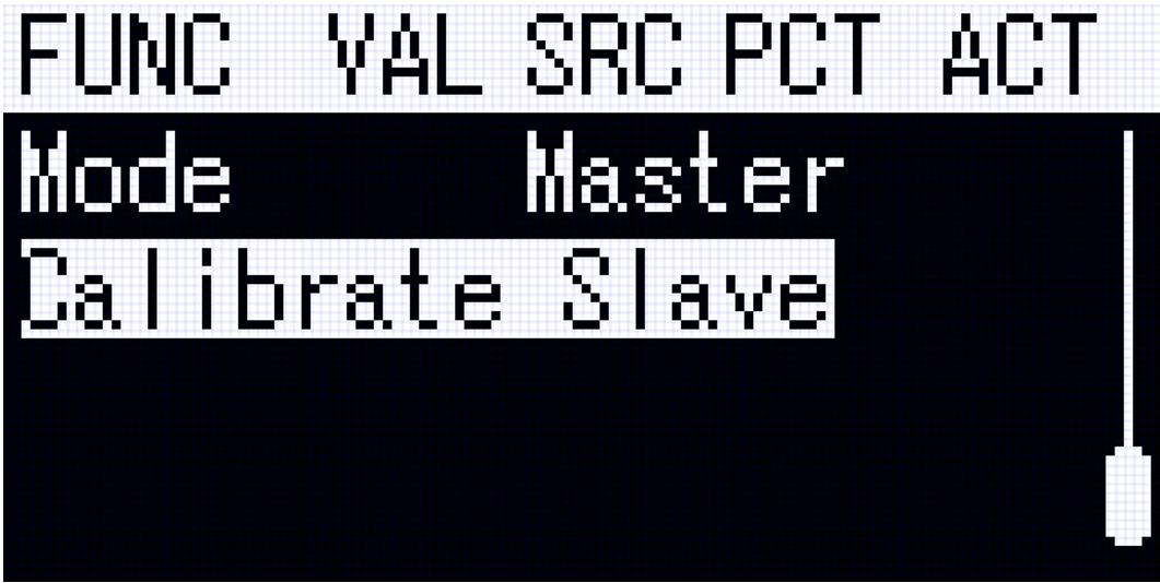 Use "Calibrate Slave" to ensure that the endpoints of the slave radio are correct. The "VAL" column shows the stick position of the slave radio from -100 to 100.