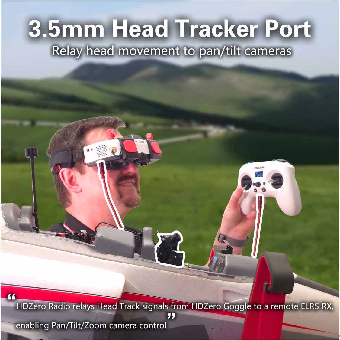 The HDZero Radio can receive head tracking signals from the HDZero and BoxPro goggles and transmit them via ELRS. Once connected to the Goggle' s HT output port, configure the channel map feature on the radio to assign HT1, HT2, or HT3 to any of the 10 channels of the radio.