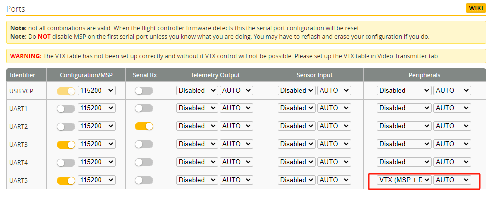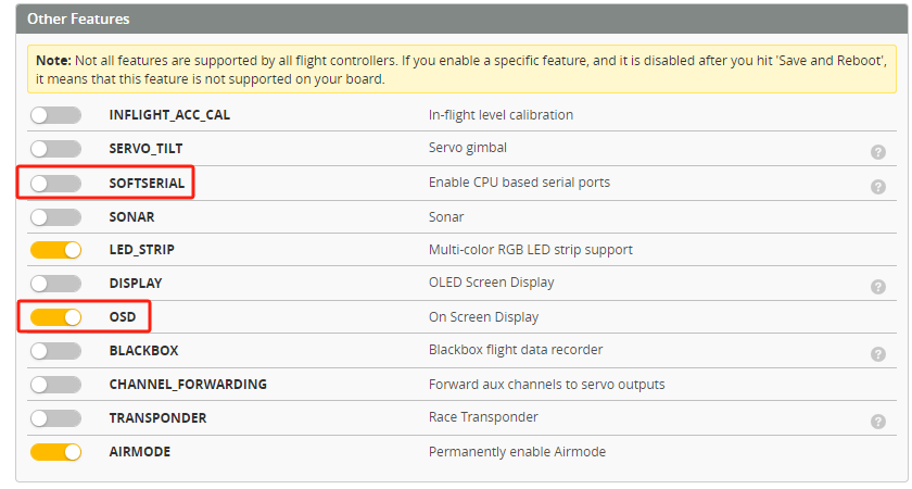 Note: A soft serial UART is not supported for VTX (MSP + Displayport).