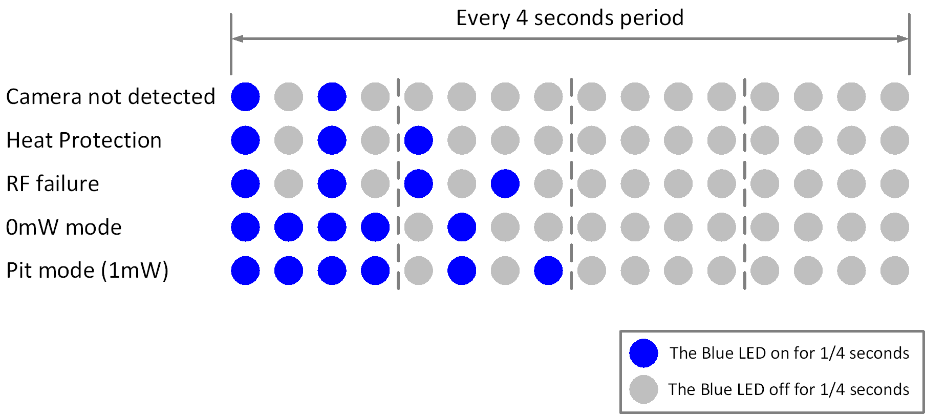 | 3 short flashes | Over-heating | Use a fan to cool VTX |